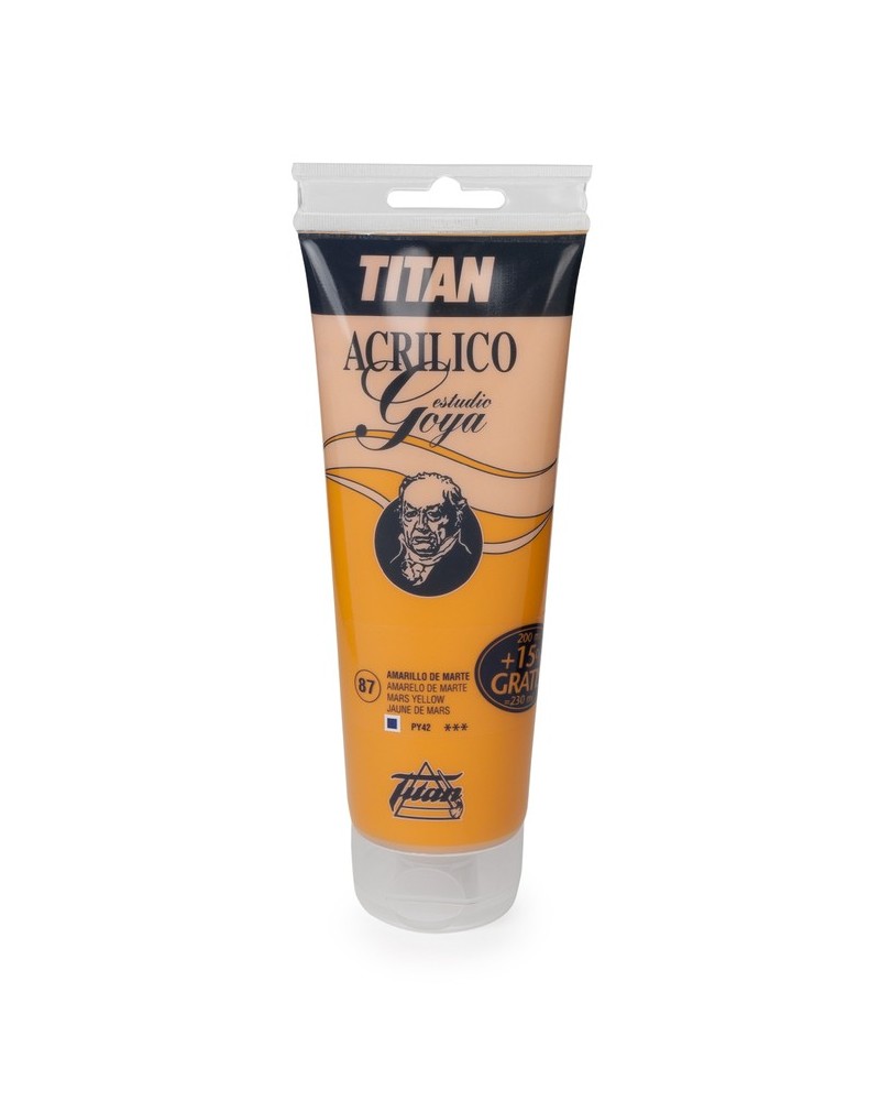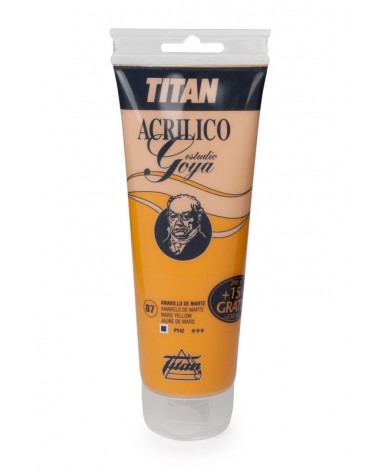 Acrílico Titan Goya Color Amarillo de Marte numero 87 con Color Index PY42 el Número Index 77492 y la Composición: Pigmentos Oxido de Hierro amarillo