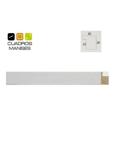 Moldura Blanca con filos plata para espejos. Madera natural de Ayous. Ancho: 20 mm. Alto: 20 mm. Galce: 15 mm.