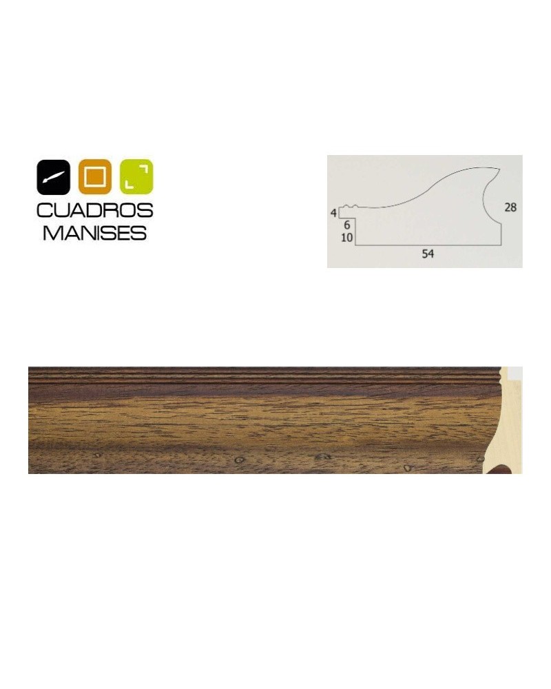 Moldura acabado Nogal picado con filo Wenge para espejos. Madera natural de Ayous. Ancho: 60 mm. Alto: 28 mm. Galce: 10 mm.