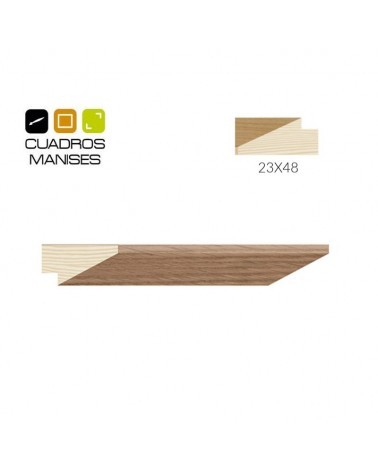 Moldura madera con acabado de chapa natural para espejos. Madera Pino Finger. Ancho: 23 mm. Alto: 48 mm.