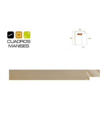 Moldura madera con acabado de chapa roble natural para espejos. Madera Pino Finger. Ancho: 20 mm. Alto: 40 mm. Galce: 34 mm.