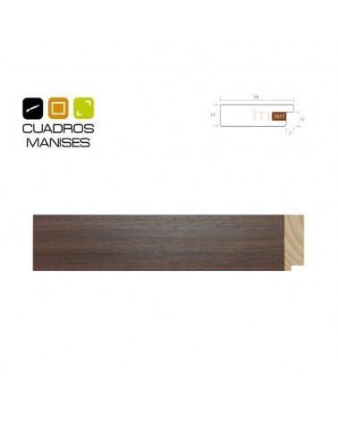 Moldura madera imitación nogal para espejos. Madera Pino Finger. Ancho: 70 mm. Alto: 17 mm. Galce: 11 mm.