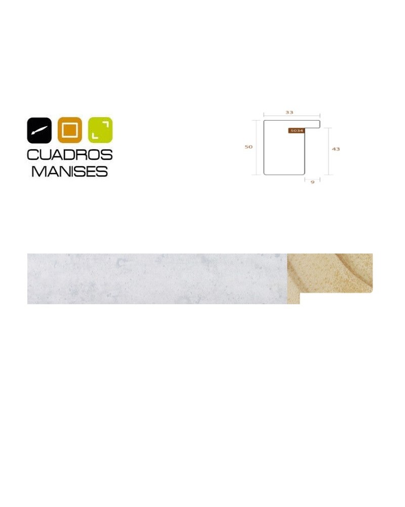 Moldura Blanca patinada de textura rugosa para espejos. Madera Pino Finger. Ancho: 33 mm. Alto: 50 mm. Galce: 43 mm.
