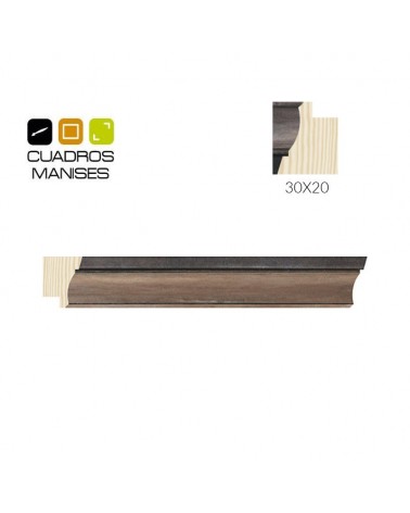 Moldura Gris patinada de textura rugosa para espejos. Madera Pino Finger. Ancho: 33 mm. Alto: 50 mm. Galce: 43 mm.