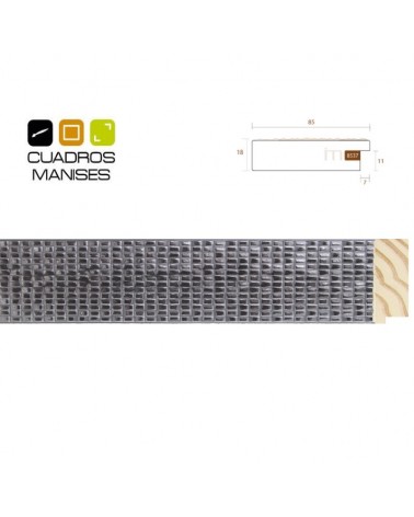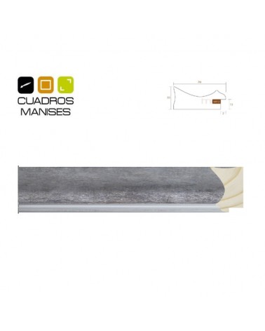 Moldura Color Plata para espejos. Madera natural de Pino. Ancho: 50 mm. Alto: 50 mm. Galce: 26 mm.