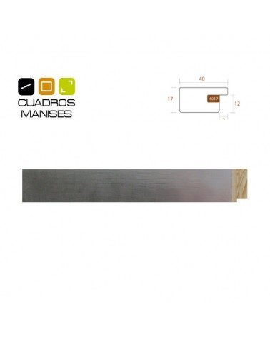 Moldura Color Plata imitación aluminio para espejos. Madera Pino Finger. Ancho: 40 mm. Alto: 17mm. Galce: 12 mm.