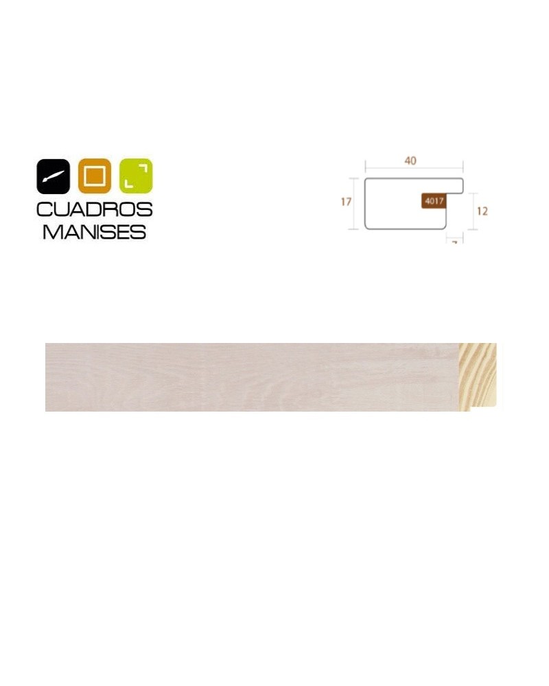 Moldura Patinada Blanca para marcos. Madera Pino Finger. Ancho: 40mm. Alto: 17mm. Galce: 12mm.