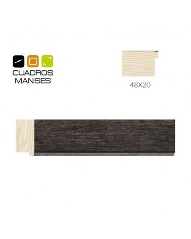 Moldura Bicolor Negra para marcos. Madera Pino Finger. Ancho: 48 mm. Alto: 20 mm.