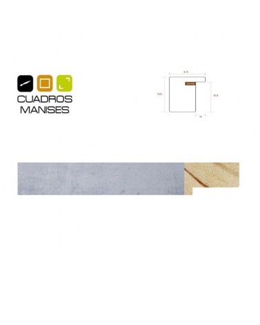 Moldura Gris patinada de textura rugosa para marcos. Madera Pino Finger. Ancho: 33 mm. Alto: 50 mm. Galce: 43 mm.