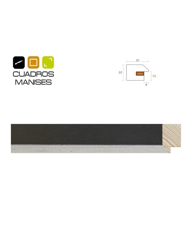 Moldura Gris Oscuro con filo Plata para marcos. Madera Ayous. Ancho: 31 mm. Alto: 22 mm. Galce: 12 mm.