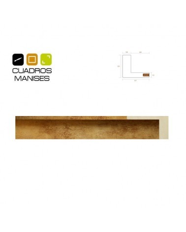 Moldura Color Oro Zinc para marcos. Madera Ayus. Ancho: 57mm. Alto: 55mm. Galce: 43mm.