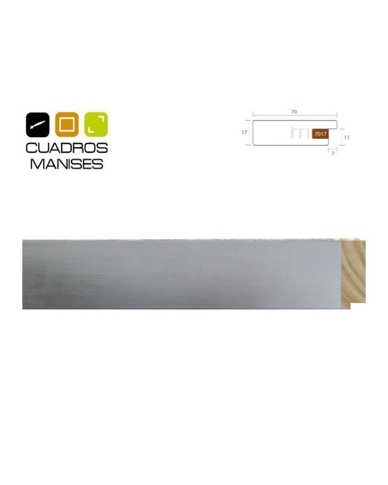 Moldura color Plata fría para marcos. Madera Pino Finger. Ancho: 70 mm. Alto: 17 mm. Galce: 11 mm.